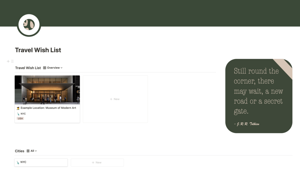 Travel Wish List | Notion Template
